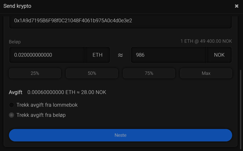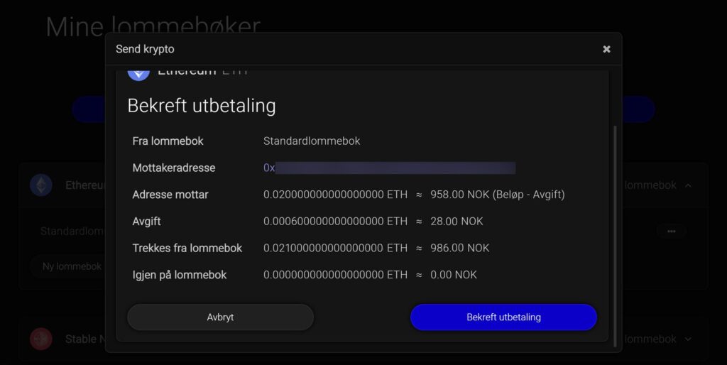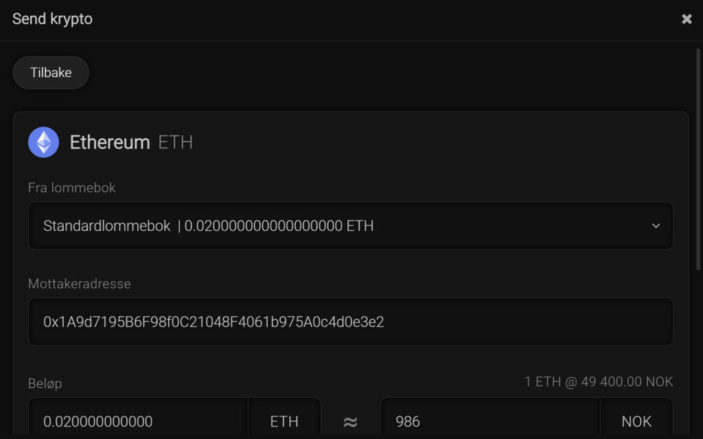 Her er det viktig å være nøye med å fylle inn korrekt adresse, samt beløp, akkurat på samme vis som når du benytter en nettbank.