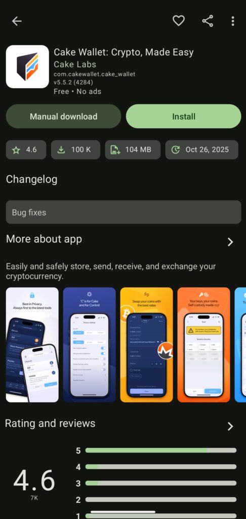 https://play.google.com/store/apps/details?id=com.cakewallet.cake_wallet