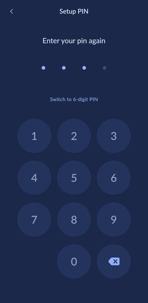 Først må du velge en PIN for appen.