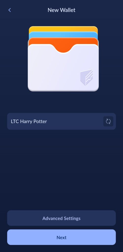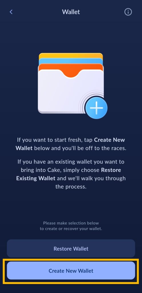 Trykk på Create New Wallet