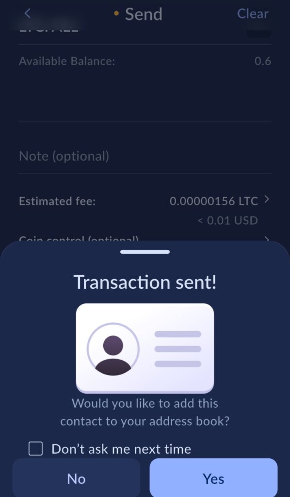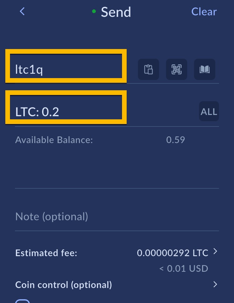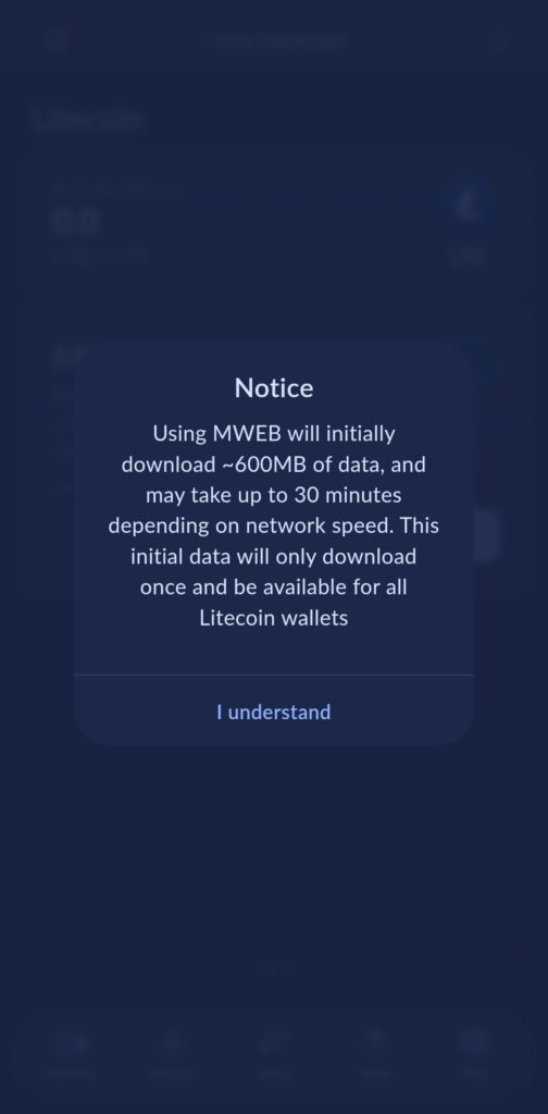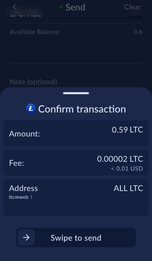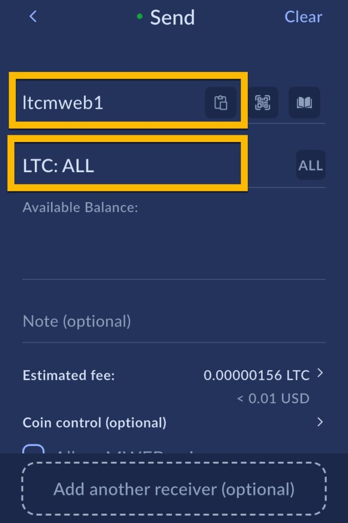 Du kan nå betale til andre Litecoin MWEB brukere ved å benytte send funksjonen.
