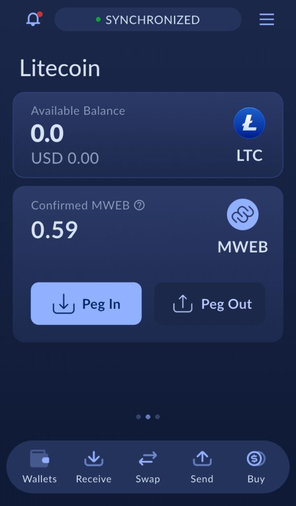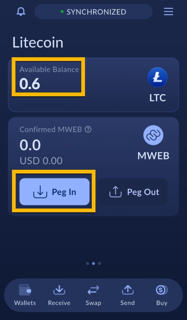 Nedenfor følger en steg for steg oppskrift på hvordan du konverterer (peg in) LTC mynter til MWEB (MimbleWimble).