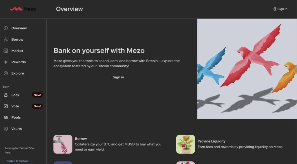 Mezo Network er et Bitcoin-basert Layer 2 (L2) (Bitcoin blokkjeden er Layer1), som lar deg bruke BTC som sikkerhet (collateral) for låneopptak og forbruk, uten å måtte selge beholdningen.