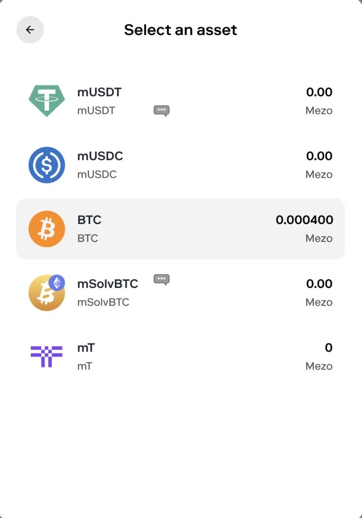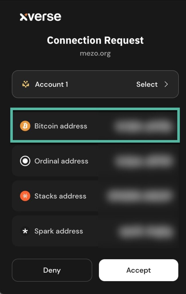 - 3. Foreta et innskudd i BTC fra Xverse-walleten til Mezo-tjenesten.