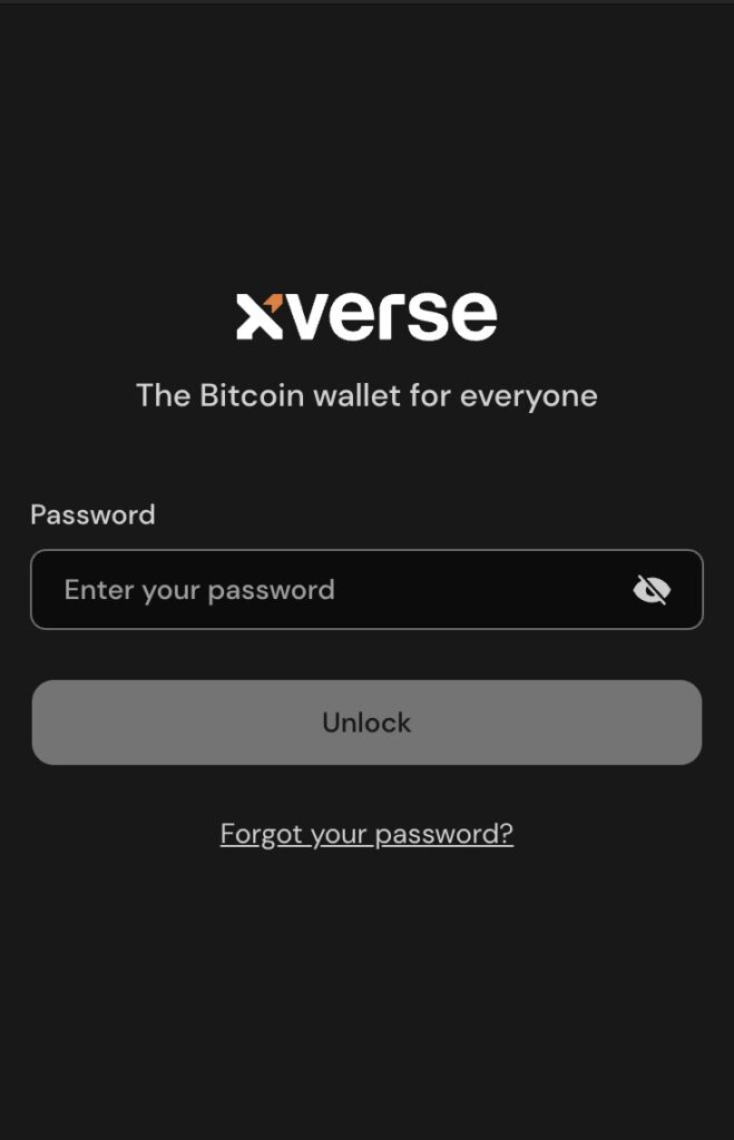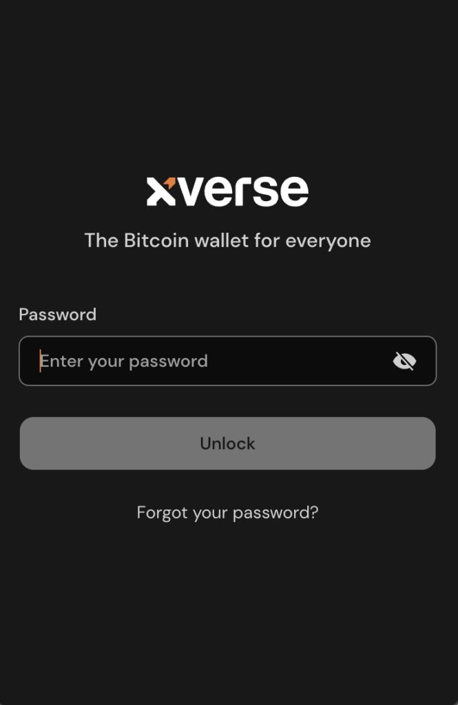 Fyll inn passord i Xverse, og klikk på Unlock.