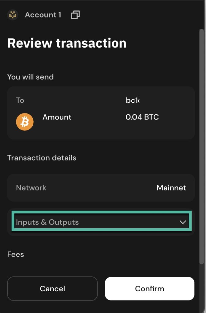 Det kan også være en god idé å åpne “Inputs & Outputs”, slik at du får oversikt over mottakeradresser.