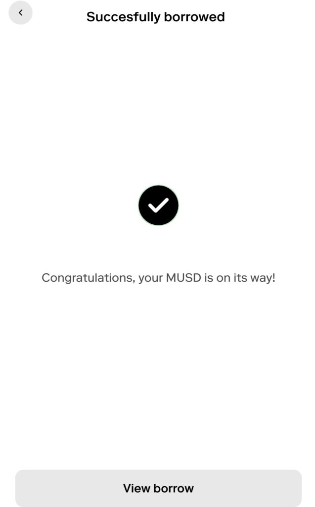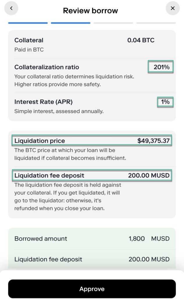 Med sikkerheten (collateral) nå på plass, kan du starte prosessen med å ta opp et lån/skape MUSD.
