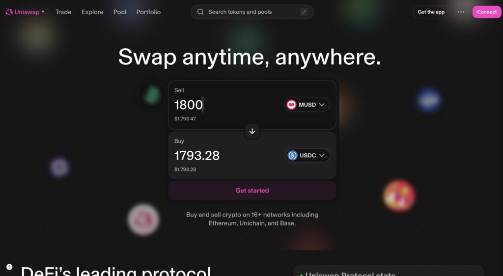 Alternativt kan du også benytte en annen swappe-tjeneste enn Mezos interne, deriblant Uniswap, som tilbyr langt flere valutaer.