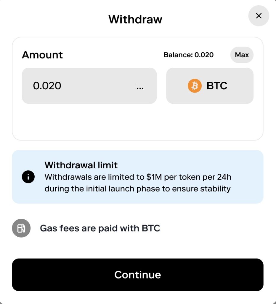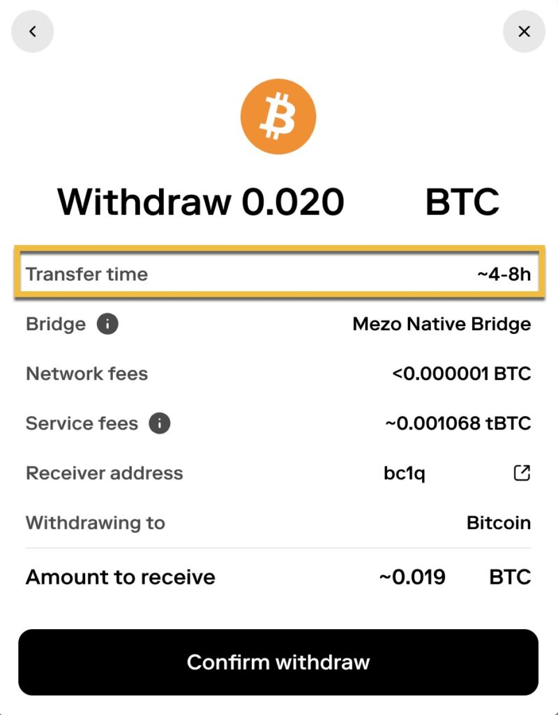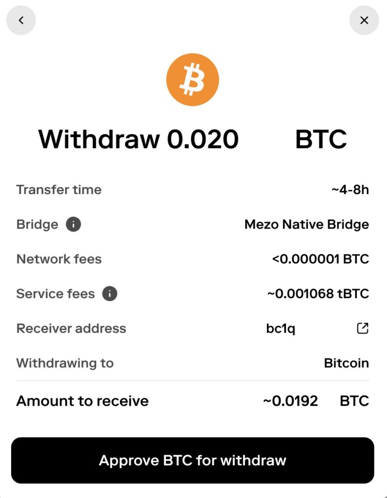 Til slutt må du foreta et uttak fra Mezo til Xverse-walleten.