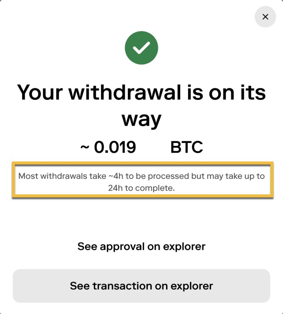 Legg merke til at utbetalingen til Xverse-walleten kan ta mellom 4 og 8 timer.